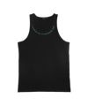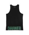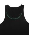 HemLogo Tanktop(ブラック/グリーン)●Design/デザインバック裾部分にロゴをデザインしたレイヤード用タンクトップ。フロント首元にもデザインを配置。バック首元にはラバーピス付き。【モデル着用サイズ:M】身長173cm/体重60kg#タンクトップ#HIPHOP#ヒップホップ#韓国ストリート#ストリート系#ストリートファッション#DIVINER