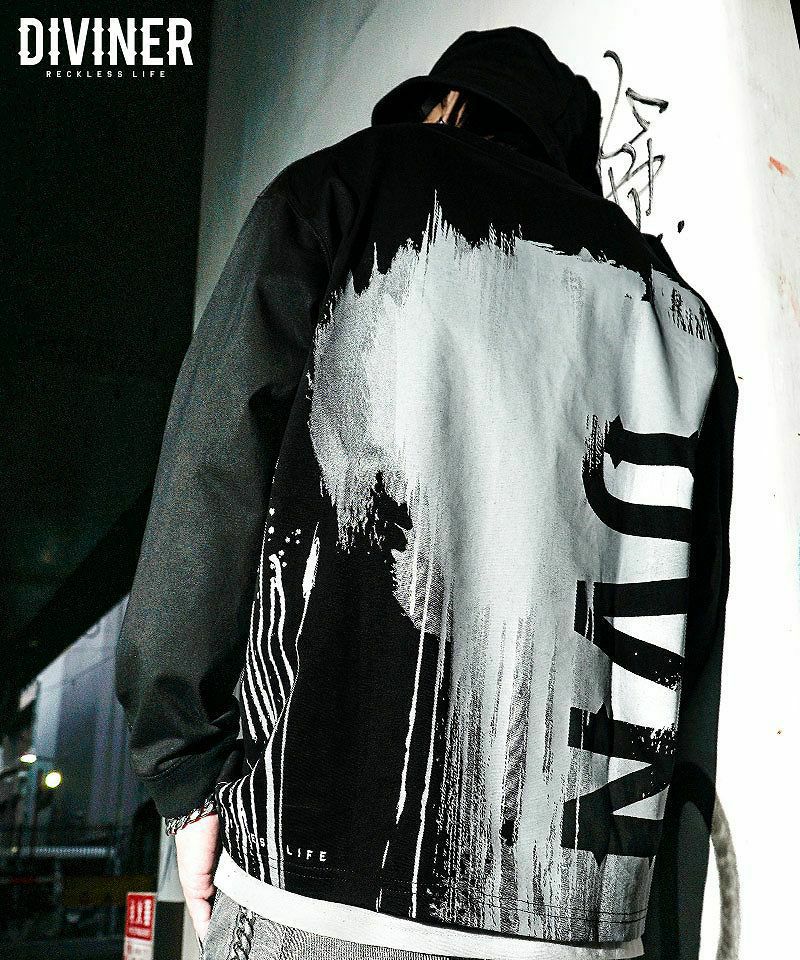 Dripped Spray Logo L/TEE/ドリップドスプレーロゴ長袖Tシャツ「RECKLESS LIFE=妥協のない生き様」を歩む者達へ、DIVINERからDripped Spray Logo L/TEEが登場。●Design/デザインバックにスプレーを吹きかけたようなデザインの長袖Tシャツ。左裾にはブランドコンセプトを配置。左袖にはロゴを刺繍。【モデル着用サイズ:M】身長173cm/体重60kg#長袖Tシャツ#ロンT#スプレー#バックプリント