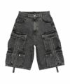 Multi Pocket Cargo Denim Shorts●Design/デザイン抜染技法によるムラ感のあるデニムカーゴショーツ。両サイドに立体感のあるポケット、テープを配置。【モデル着用サイズ:M】身長173cm/体重60kg#抜染#ムラ#タイダイ#ハーフパンツ#ショーツ#カーゴパンツ#デニム#HIPHOP#ヒップホップ#韓国ストリート#ストリート系#ストリートファッション#DIVINER