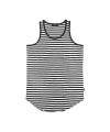 【OWN ROOTS】Border Long Tanktop●Design/デザインボーダー柄のロング丈タンクトップ。左裾にはブランドタグを配置。【モデル着用サイズ:M】身長173cm/体重60kg