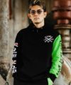 [TEAM ONE×DIVINER×BODYMAKERコラボセットアップ]アクセントカラーのライムグリーンがアクセントになり、トレンド感のある仕上がり。バック面に配置された、インパクト抜群のトリプルコラボロゴは、今回のコラボでしかお目にかかれない限定ロゴ。皇治選手着用サイズ:L