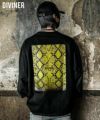 私は不死のために生きたい。中途半端な妥協は受け入れない。I want to live for immortality We do not accept half-hearted compromises.-フョードル・ドストエフスキー(小説家・思想家/1821 1881)-Yellow python L/TEE/イエローパイソンロンT「RECKLESS LIFE=妥協のない生き様」を歩む者達へ、DIVINERからYellow python L/TEEが登場。●Design/デザインバックにパイソン(蛇)柄を用いたデザインを配置したひと品。フロントにもパイソン(蛇)柄でブランドコンセプトを。サイジングはユニセックスで楽しめるトレンドのオーバーサイズ仕様。【モデル着用サイズ:M】身長173cm/体重60kg#ロンT#長袖Tシャツ#バックプリント#バックロゴ#蛇柄#パイソン柄#ブラック#黒