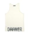 HemLogoTanktop(オフホワイト/グレー)●Design/デザインバック裾部分にロゴをデザインしたレイヤード用タンクトップ。フロント首元にもデザインを配置。バック首元にはラバーピス付き。【モデル着用サイズ:M】身長173cm/体重60kg#タンクトップ#HIPHOP#ヒップホップ#韓国ストリート#ストリート系#ストリートファッション#DIVINER