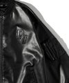 虎は死して皮を留め人は死して名を残す。A tiger dies and retains its skin, and a person dies and leaves a name behind.-生田春月(詩人/1892 1930)-Synthetic Leather Patch MA-1/シンセティックレザーパッチMA-1「RECKLESS LIFE=妥協のない生き様」を歩む者達へ、DIVINERからSynthetic Leather Patch MA-1が登場。●Design/デザイン全体をレザー仕様にしたMA-1ジャケット。左胸にはDVロゴを配置。左裾にロゴを刺繍で刻む。サイジングはユニセックスで楽しめるトレンドのオーバーサイズ仕様。【モデル着用サイズ:M】身長173cm/体重60kg#レザージャケット#革ジャン#ジャケット#アウター#レザー#MA1#ボンバージャケット#フライトジャケット