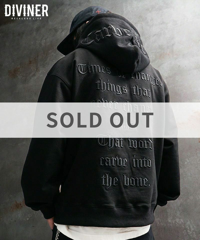【BlackLetter】Rear Embroidery Zip Hoodie/リアエンブロイダリージップフーディー「RECKLESS LIFE=妥協のない生き様」を歩む者達へ、DIVINERからRear Embroidery Zip Hoodieが登場。●Design/デザイン背面に同色で刺繍を施したジップパーカー。左袖口にも同色でブランドロゴを刺繍。ジップはYKK仕様。【モデル着用サイズ:M】身長173cm/体重60kg#フーディー#パーカー#ジップパーカー#刺繍#ブラックレター#オールドイングリッシュ