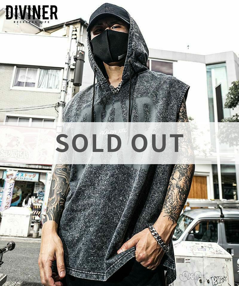 Ephemeral Logo NoSleeve Hoodie/エフェメラルロゴノースリーブフーディー「RECKLESS LIFE=妥協のない生き様」を歩む者達へ、DIVINERからEphemeral Logo NoSleeve Hoodie(ブラックケミカル)が登場。●Design/デザインフロントに「DVNR」とロゴを配置したノースリーブフーディー。裾はスリット付き。【モデル着用サイズ:M】身長173cm/体重60kg【DIVINER】RECKLESS LIFE―妥協のない生き様最後は誰だって骨になる。ただ骨が残るのか。それとも骨を残すのか。何が残る。何を残す。#ノースリーブ#パーカー#フーディー#HIPHOP#ヒップホップ#韓国ストリート#ストリート系#ストリートファッション#DIVINER#ディバイナー
