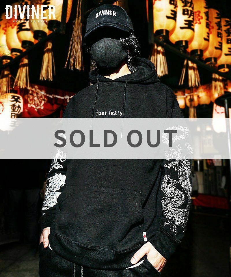 DIVINER ディバイナー 【DIVINER JAPAN】Just Ink’d Hoodie(ブラック/ホワイト)