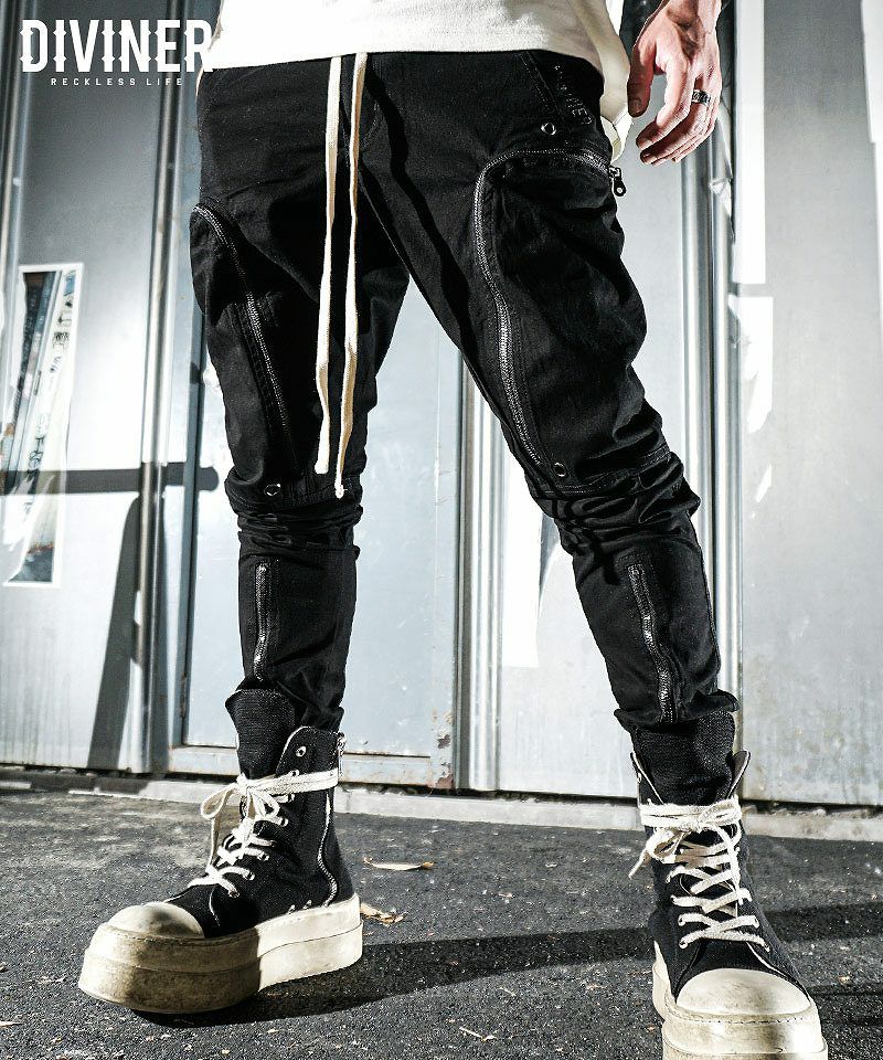 Militarily Zip Cargo Pants●Design/デザイン両サイド・両裾にZIPを配置したカーゴパンツ。ウエストの紐は平紐を使用。左ポケット部分にロゴを同色刺繍。【モデル着用サイズ:M】身長173cm/体重60kg#カーゴパンツ#ミリタリーパンツ#HIPHOP#ヒップホップ#韓国ストリート#ストリート系#ストリートファッション#DIVINER