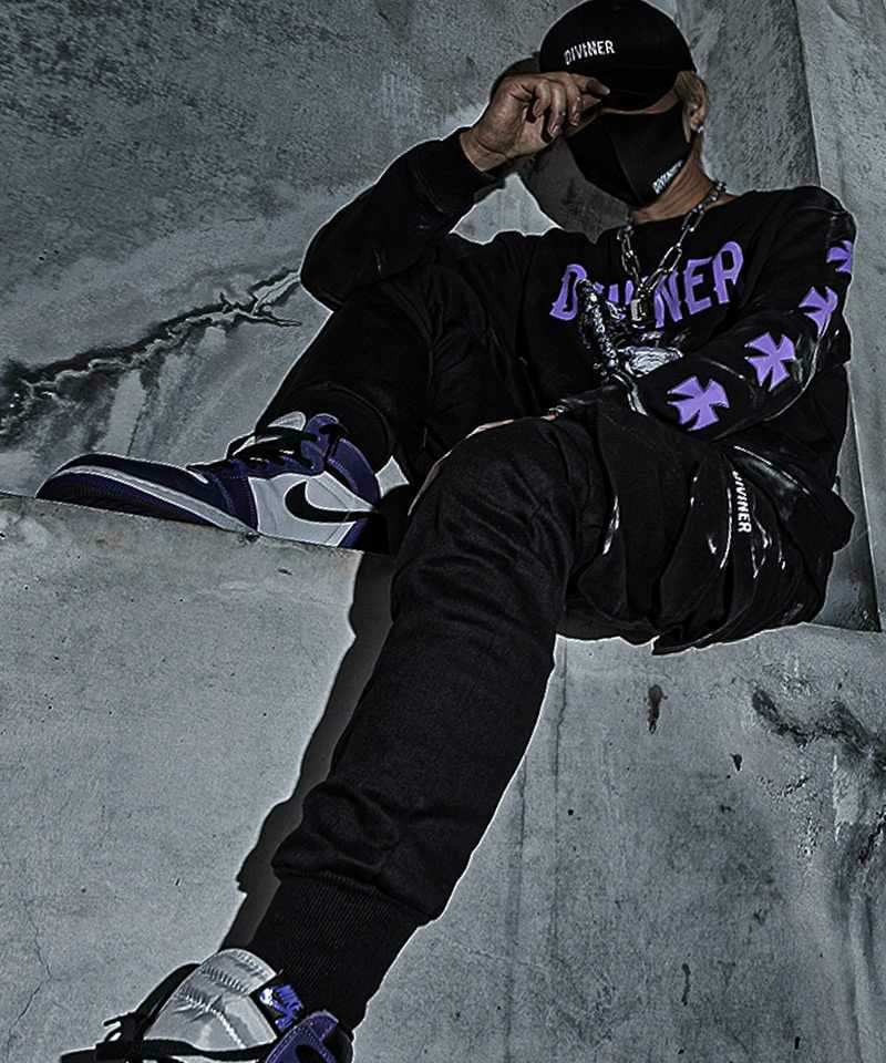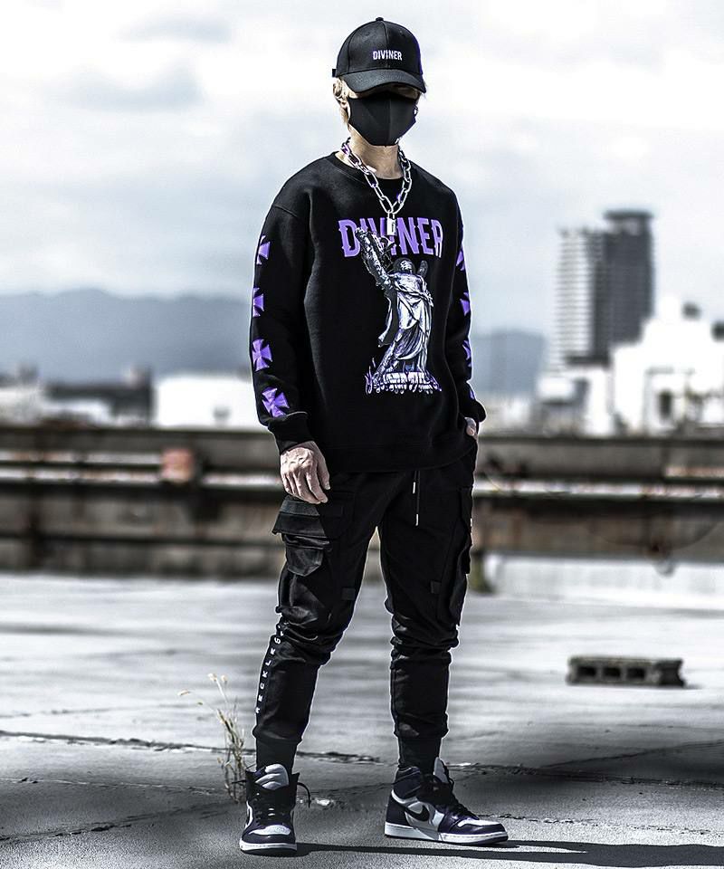 DIVINER ディバイナー Judgement Sweat Shirt (ブラック×パープル)