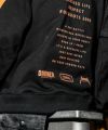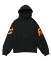 【BlackLetter】Straddled Logo Hoodie(ブラック/オレンジ)「RECKLESS LIFE=妥協のない生き様」を歩む者達へ、DIVINERからStraddled Logo Hoodieが登場。●Design/デザイン背面にデザインを配置したプルオーバーパーカー。パーカーの紐部分「アグレット」にはロゴを刻印。【モデル着用サイズ:M】身長173cm/体重60kg#フーディー#パーカー#プルオーバーパーカー#プルオーバー#ブラックレター#オールドイングリッシュ