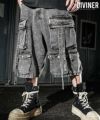 Multi Pocket Cargo Denim Shorts●Design/デザイン抜染技法によるムラ感のあるデニムカーゴショーツ。両サイドに立体感のあるポケット、テープを配置。【モデル着用サイズ:M】身長173cm/体重60kg#抜染#ムラ#タイダイ#ハーフパンツ#ショーツ#カーゴパンツ#デニム#HIPHOP#ヒップホップ#韓国ストリート#ストリート系#ストリートファッション#DIVINER