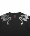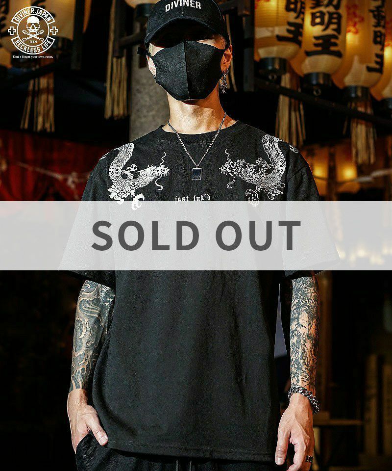 【DIVINER JAPAN】Just Ink'd Dragon TEE(ブラック/ホワイト)●Design/デザイン両肩に龍の刺繍を刻んだ半袖Tシャツ。バック首元にはロゴをデザイン。左裾にピスを配置。【モデル着用サイズ:M】身長173cm/体重60kg