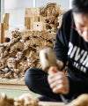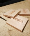 Carve Logo Masu●Design/デザイン木彫師前田 暁彦氏との特別対談を記念し数量限定で制作された木彫りの桝。桝の底にはロゴを彫刻。素材はヒノキを使用。《前田氏との特別対談はコチラから》