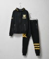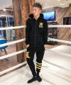 【スウェットセットアップ】K-1ファイターの城戸選手とDIVINER(ディバイナー)がコラボした、オリジナルセットアップの登場。城戸選手が素材からサイジング、デザインまでこだわって選定した完全オリジナルアイテムにブラック/ゴールドの新色が追加。パーカーは胸元と背中、にオリジナルロゴがプリントされ、さらにはフードには城戸選手の代名詞でもある「GOLDEN HITMAN(ゴールデンヒットマン)」の文字プリントが施されています。また、右腕にはK-1のロゴも。フロントはブラックジップを採用しています。城戸選手ならではのトレーニングで使えるように、ポケットからモノが落ちないよう、両サイドに施されたポケットも同じくブラックジップで統一されたデザインです。パンツに関しては、ウエストは伸縮性に優れたゴム&紐でハードな動きでもずれにくく調節可能に。ポケットは両サイドと右後ろの3ポケットを装備し、パーカー同様にジップ付で、ポケットから荷物が落ちない仕様です。プリントは右太ももにオリジナルロゴと、左足に3本ライン、後ろの左ヒップに城戸選手×DIVINER×K-1のトリプルネームがデザインされています。※城戸選手着用はXLサイズです。