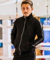 村越選手の得意技・三日月蹴りをモチーフにしたロゴ、キャッチフレーズの「蹴撃スナイパー」が胸元に刺繍されたトラックジャケットとハーフパンツのセットアップ。シンプルながらも、サイドの迷彩のサテンテープデザインや、ロゴ刺繍などディティールにもこだわったセットアップ。ボトムスには右側後ろにもポケットがあり、ポケット下の裾部分にはトラックジャケットと同じロゴが刺繍されています。スポーツ時にはもちろん、ワンマイルウェアとしてリラックス時のお伴にもピッタリ。村越選手着用サイズ:M 村越選手サイン入りステッカー付き。 ※過去に購入された方に関しましては 弊社より追って郵送でお送りいたします。