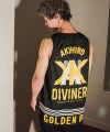 城戸選手×DIVINERのコラボメッシュタンクトップへのオマージュとして金子選手バージョンが誕生。胸元とバックには金子選手×DIVINERのオリジナルロゴがプリントされ、前後の裾部分には「GOLDEN BOY」の文字が施されています。メッシュ素材のため通気性に優れ、トレーニングウェアとしても活躍します。Tシャツの上から重ねて、バスケットタンクのような使い方もおススメです。金子選手着用サイズ:XL