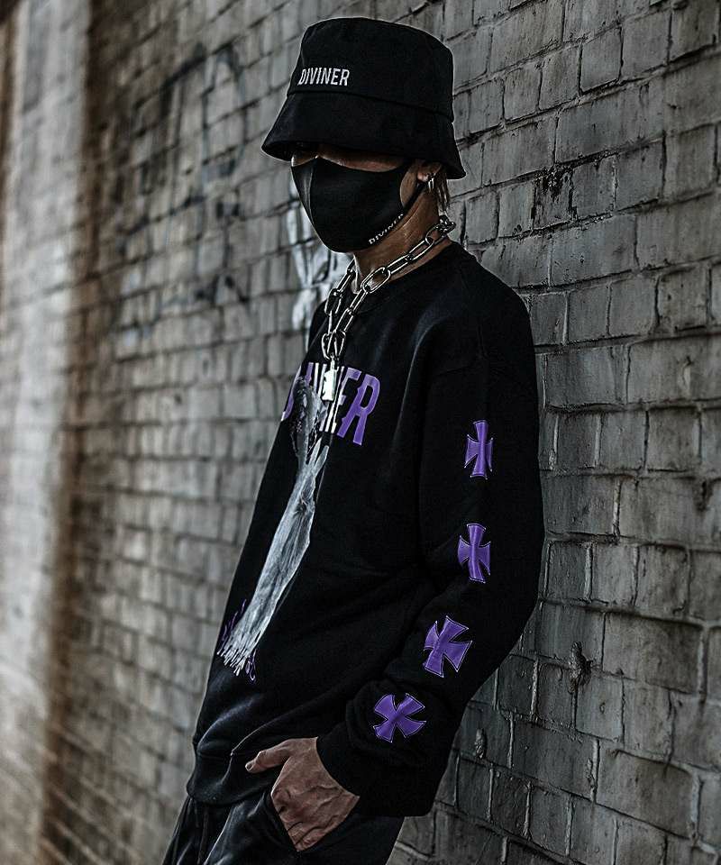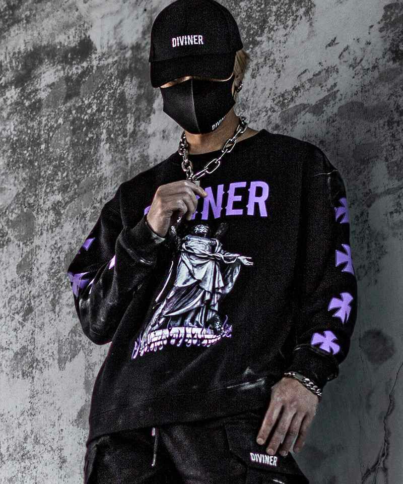 DIVINER ディバイナー Judgement Sweat Shirt (ブラック×パープル)