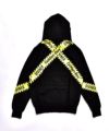 立ち入り禁止テープのようなデザインが目を引くパーカー。バック面に、まさしく立ち入り禁止のごとく×にデザインされた、DIVINERらしいグラフィック。ストリート感溢れる旬な仕上がりで、アイテムを選ばず幅の広いコーディネートにマッチ。テープ内には「GOLDEN BOY」とDIVINERのロゴがデザインされています。しっかりとした綿100%生地を使用。金子選手着用サイズ:L