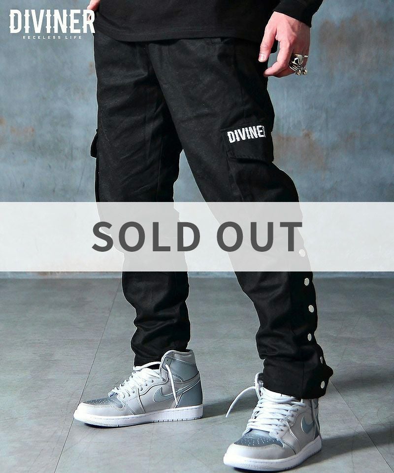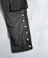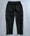 [Side Snap Cargopants]サイドにシルバーのボタンを配置したワイドカーゴパンツ。ミリタリーでストリートな要素の強いカーゴパンツと、ワイドパンツを融合させたひと品。ワイドパンツならではのルーズなサイジングが、ストリートな雰囲気を加速させる仕上がりに。また、コーディネートのアクセントとして、両サイドにデザインされたシルバーのボタンは開閉式で、それぞれ違った表情を見せてくれる。ストリートシーンで大活躍間違いなしの一本です。