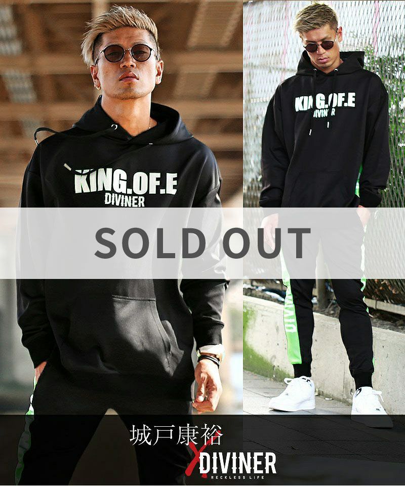 [SETUP KIDOVer.]DIVINER×城戸康裕闘志を胸に、己自身と闘う信念を日々に。「RECKLESS LIFE=妥協のない生き様」を歩む者達へ、DIVINERから「RECKLESS LIFE=妥協のない生き様」を貫く両雄がコラボした至高のセットアップが登場。サイドのネオングリーンのラインが目を惹く。さらっとした肌触りの生地で機能性にも優れており、アクティヴにも対応。
