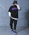 フロント胸元には、カレッジロゴ風の刺繍でコンセプトを。