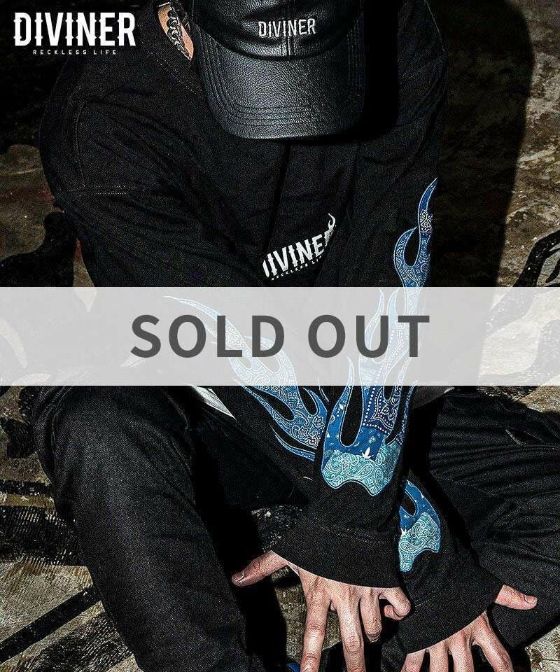 心とは、満たされるべき「器」ではなく、燃やされるべき「炎」なのだ。The heart is not a "vessel" to be filled, but a "flame" to be burned.-プルタルコス(著作家/46~119)-Ignis L/TEE/イグニスロンT「RECKLESS LIFE=妥協のない生き様」を歩む者達へ、DIVINERからIgnis L/TEEが登場。●Design/デザイン両腕に蒼いペイズリー柄のファイヤーデザインを刺繍でデザインしたひと品。フロント胸元にはブランドロゴを配置。サイジングはユニセックスで楽しめるトレンドのオーバーサイズ仕様。【モデル着用サイズ:M】身長173cm/体重60kg#ロンT#長袖Tシャツ#ロゴ#炎#ファイヤー柄#ペイズリー#ペイズリー柄