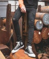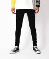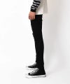 [ブラックスキニー]着こなしに特別を届ける進化を遂げた“新たなるベーシック”が誕生。シルエットはどんなスタイルにもハマるベーシックなスキニーデザインにダメージをアクセントにしたデザイン。脚にフィットするのに窮屈感が無く、穿きやすいのが特徴のスキニーパンツ。快適で上質な穿き心地で、欠かせない1本になること請け合い。ダメージ部分がけば立って見えるのは、ポリウレタンを2%配合している伸縮性の高い生地を利用しているから。はいていただくと、ダメージ部分の糸が伸びるので、快適に、かつ見栄えもよくはきこなしていただけます。また、滑らかで、伸縮性あるストレッチが心地良い生地を採用。※スキニーパンツの特性上かなりタイトめな作りになっております。
