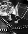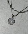 コインネックレスとチェーンネックレスが双璧をなすひと品。