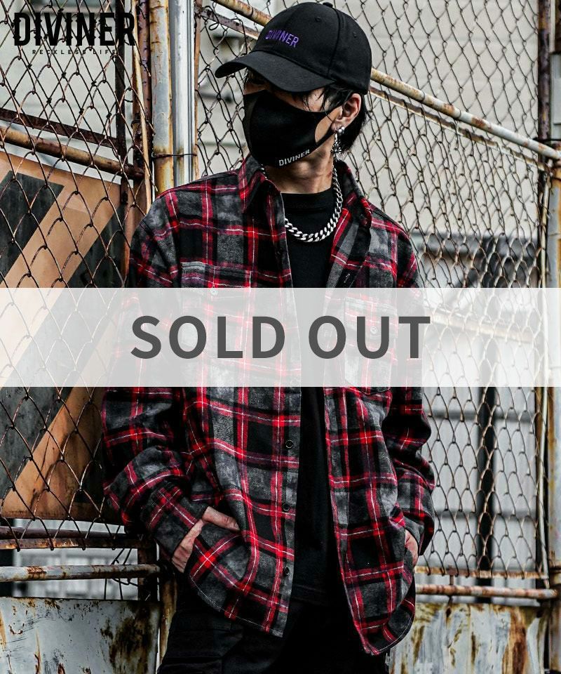 DIVINER ディバイナー 【再入荷なし】Pasting Logo Plaid Shirt(レッド)