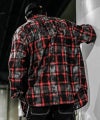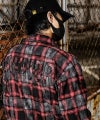 バックにロゴを刺繍で刻んだチェックシャツ。