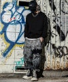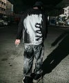 バックにスプレーを吹きかけたようなデザインの長袖Tシャツ。
