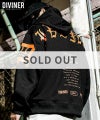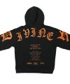 【BlackLetter】Straddled Logo Hoodie(ブラック/オレンジ)「RECKLESS LIFE=妥協のない生き様」を歩む者達へ、DIVINERからStraddled Logo Hoodieが登場。●Design/デザイン背面にデザインを配置したプルオーバーパーカー。パーカーの紐部分「アグレット」にはロゴを刻印。【モデル着用サイズ:M】身長173cm/体重60kg#フーディー#パーカー#プルオーバーパーカー#プルオーバー#ブラックレター#オールドイングリッシュ