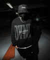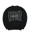 Ephemeral Logo Knit(ブラック)●Design/デザインフロントに「DVNR」をデザインしたニットセーター。コンセプトを刺繍で配置。重厚感のある肉厚な生地を使用。【モデル着用サイズ:FREE】身長173cm/体重60kg