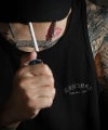 【Black Letter】Smash The Bone Tanktop●Design/デザインバックの裾にオールドイングリッシュの厚盛刺繍を刻んだタンクトップ。左胸にも厚盛刺繍でロゴをデザイン。フロント右裾にはピス付き。【モデル着用サイズ:M】身長173cm/体重60kg#ブラックレター#タンクトップ#HIPHOP#ヒップホップ#韓国ストリート#ストリート系#ストリートファッション#DIVINER