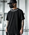 【Black Letter】Circular Neck Logo TEE●Design/デザインフロント首元に刺繍でロゴを刻んだ半袖Tシャツ。バックにはオールドイングリッシュのデザインをプリント。左裾にはピス付き。【モデル着用サイズ:M】身長173cm/体重60kg#ブラックレター#Tシャツ#HIPHOP#ヒップホップ#韓国ストリート#ストリート系#ストリートファッション#DIVINER