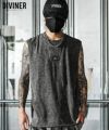 ムラ感のある抜染ボディにメタルプレートを配置したノースリーブ。