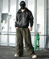 全体に加工感を施したタック入りワイドパンツ。
