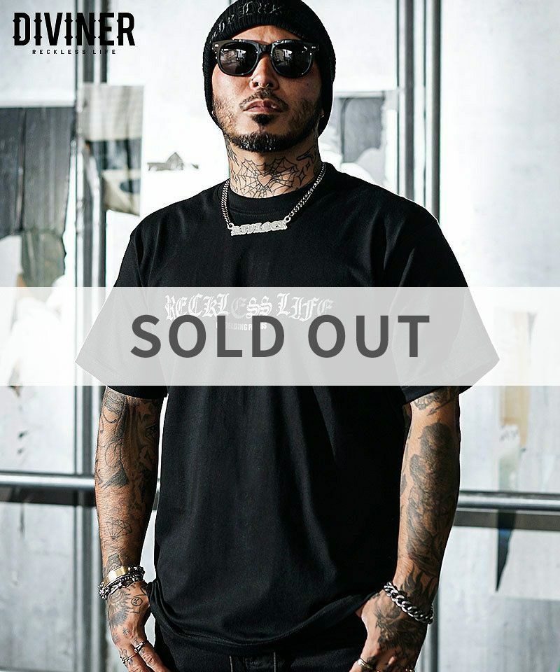 【BLACK LETTER】Evilways TEE(ブラック/チャコール)●Design/デザインブラックレター(オールドイングリッシュ)ロゴをフロント、バックにデザインした半袖Tシャツ。左袖にはクロスを刺繍。右裾にはピスを配置。【モデル着用サイズ:M】身長170cm/体重65kg