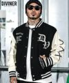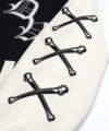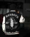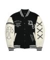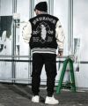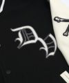 【BLACK LETTER】Grim Reaper Stadium Jacket(ブラック/ホワイト)●Design/デザインブラックレター(オールドイングリッシュ)ロゴ、デザインを刺繍で刻んだスタジアムジャケット。フロント、袖にも同様にデザインを刺繍。バックのデザインはリフレクト刺繍仕様。【モデル着用サイズ:M】身長170cm/体重65kg