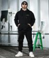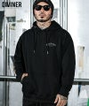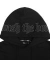 【BLACK LETTER】Engrave Head Hoodie●Design/デザインブラックレター(オールドイングリッシュ)ロゴをフード部分に刺繍で刻んだプルオーバーパーカー。フロント左胸にも同様にロゴを刺繍。右裾にはピスを配置。【モデル着用サイズ:M】身長170cm/体重65kg