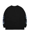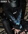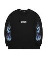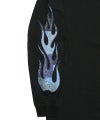 Ignis L/TEE(ブラック/ブルー)●Design/デザイン両袖にオリジナルのペイズリー柄をファイヤーパターンと共に刺 で刻んだ長袖Tシャツ。フロント胸元にはファイヤーパターンのロゴをプリント。【モデル着用サイズ:M】身長173cm/体重60kg