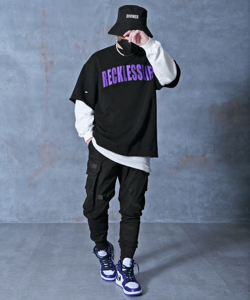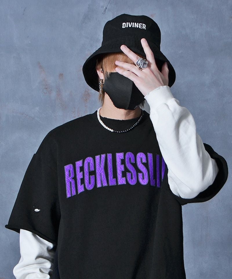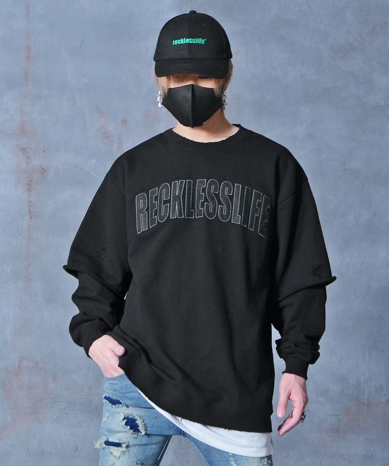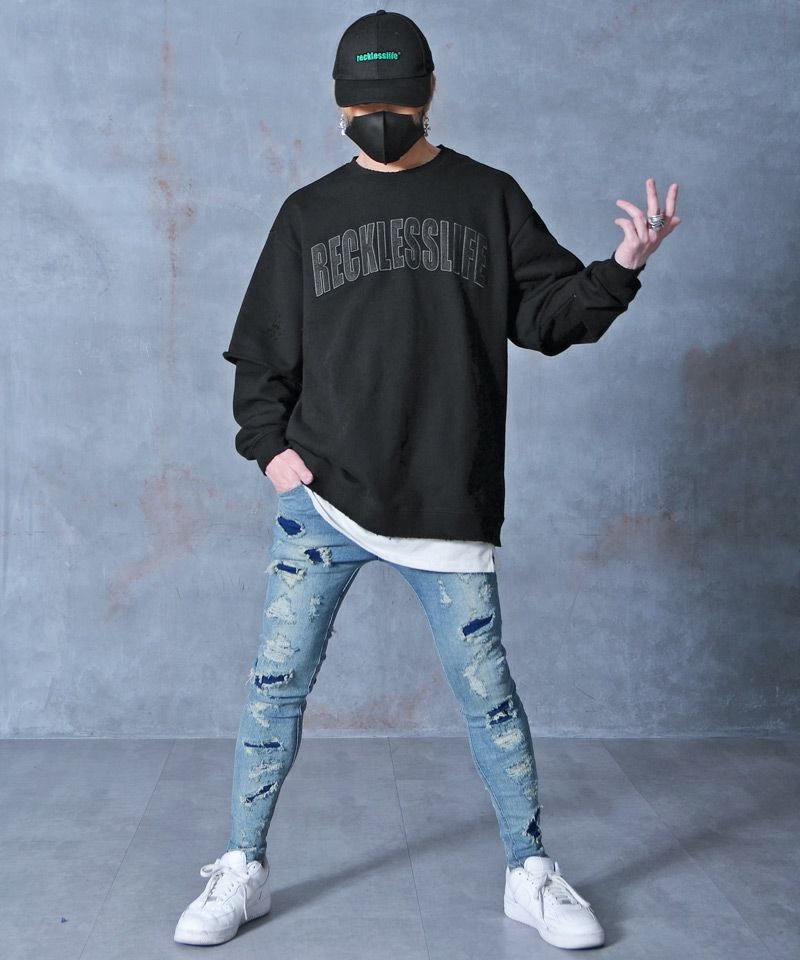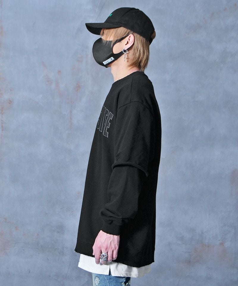 DIVINER ディバイナー Worn out Sweatshirt(ブラック/ホワイト)