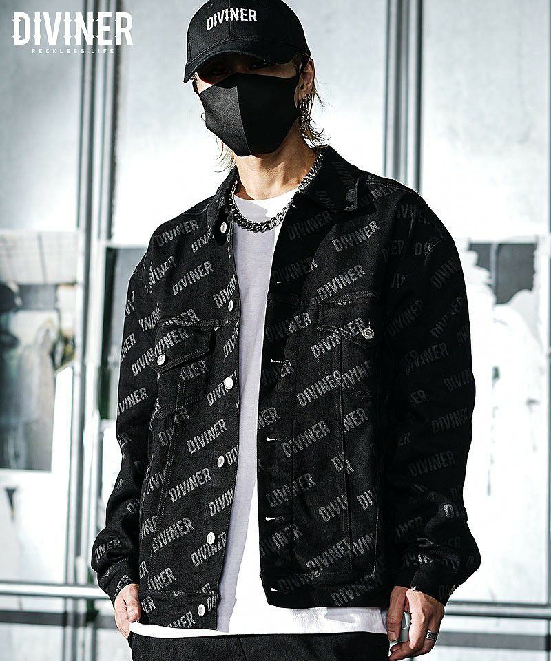 【OWN ROOTS】Logo Total Pattern Jacket●Design/デザイン全体にDIVINERのブランドロゴを落とし込んだデニムジャケット。サイジングはFREE仕様。【モデル着用サイズ:FREE】身長173cm/体重60kg