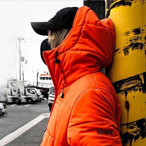 フードのあるパーカーなど、中にボリュームを持たせてもコーデを崩さない機能美。