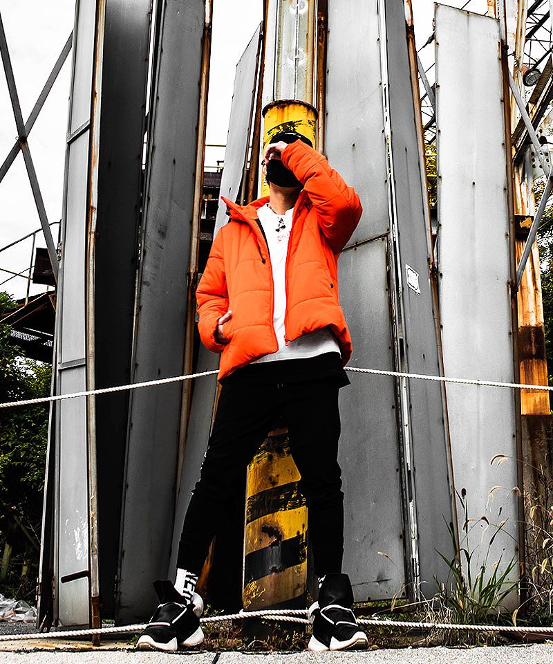 野暮ったく見えがちな中綿ジャケットも、計算されつくしたシルエットで、