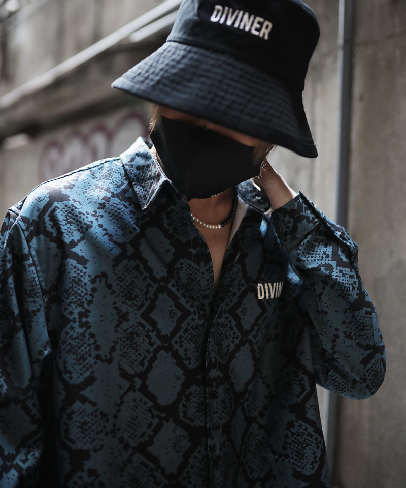 強いイメージのヒョウ柄シャツにバケットハットを合わせることで、程よくストリートライクな仕上がりに。スニーカーやパンツもブラックで統一すれば、全体がバランス良く着地。