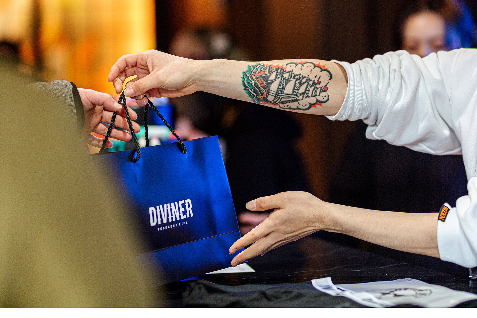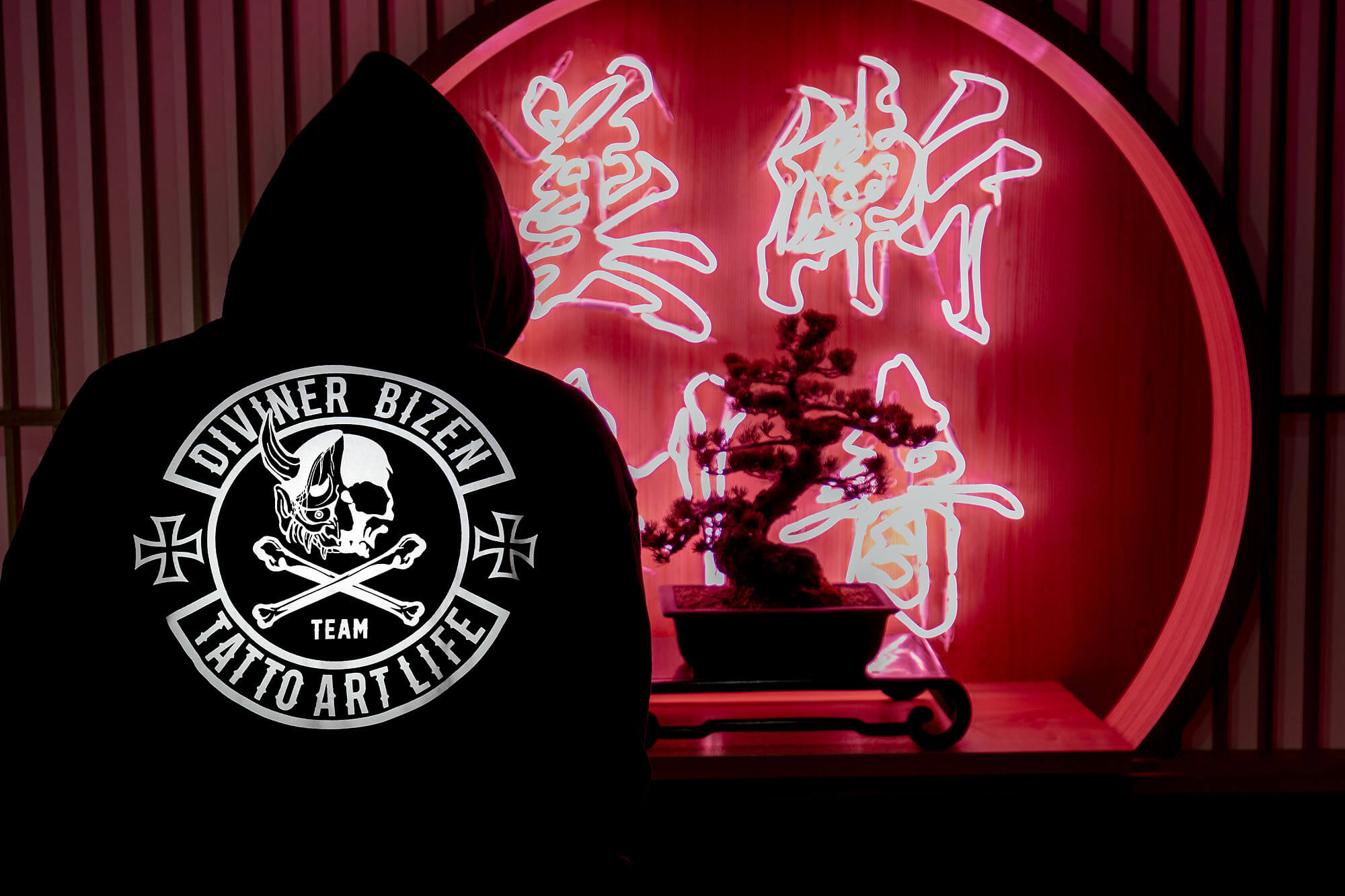 DIVINERのコンセプト「RECKLESS LIFE -妥協の無い生き様-」を体現するカリスマ彫師・美漸(bizen)氏。