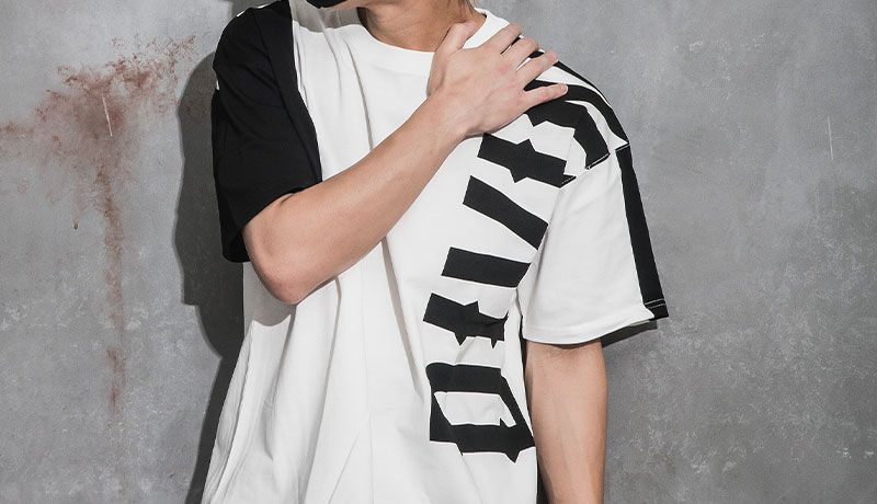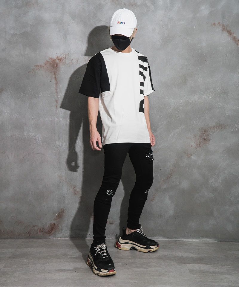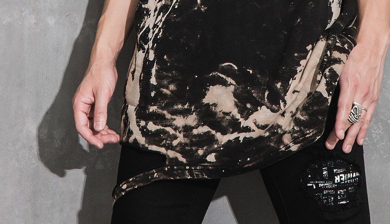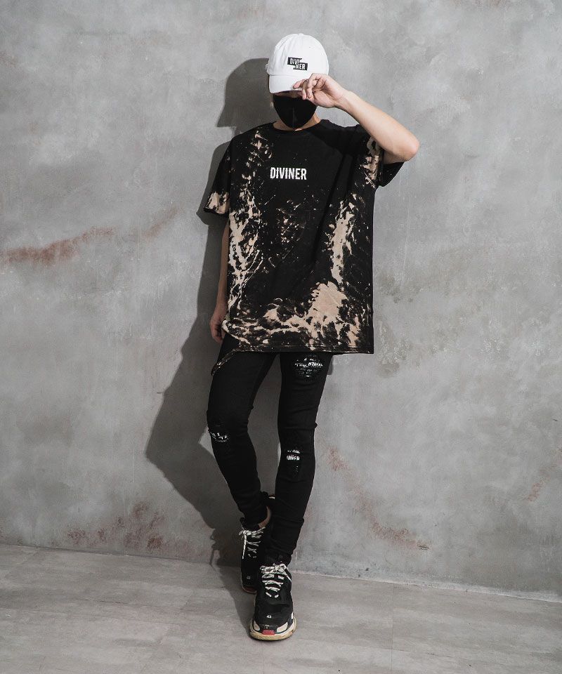 ダメージに加えて、タイダイ加工が施されているTシャツのデザインが着こなしにこなれ感をプラス。