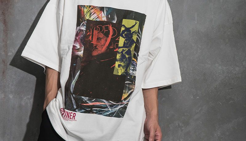 マルチカラーのロゴで、夏に相応しいポップさを演出した大人ストリートコーデ。