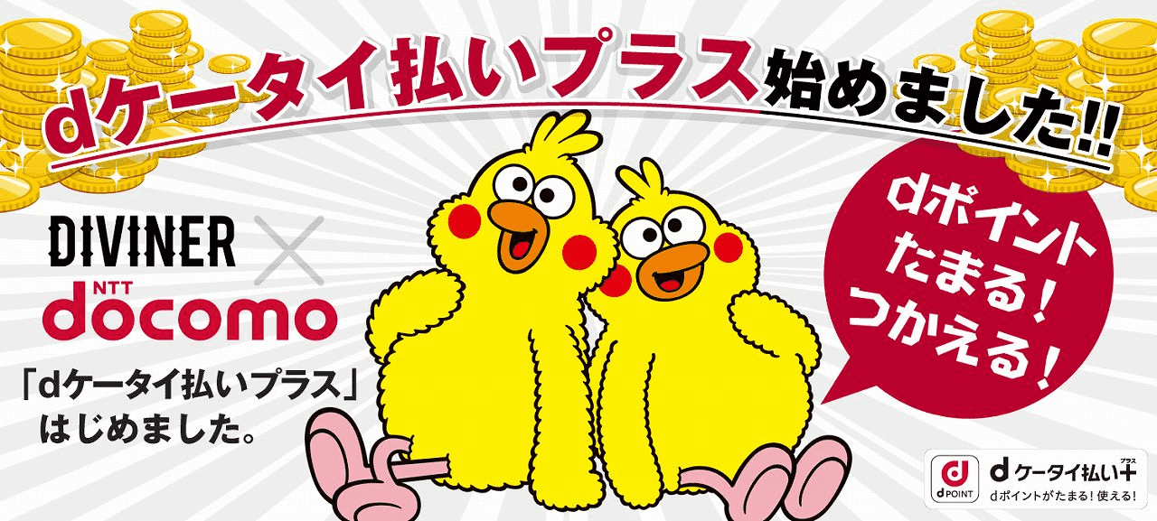 dケータイ払いプラスをご利用いただき、なおかつDIVINERの会員登録をしていただくと 今後のご利用がWでお得になるんです☆